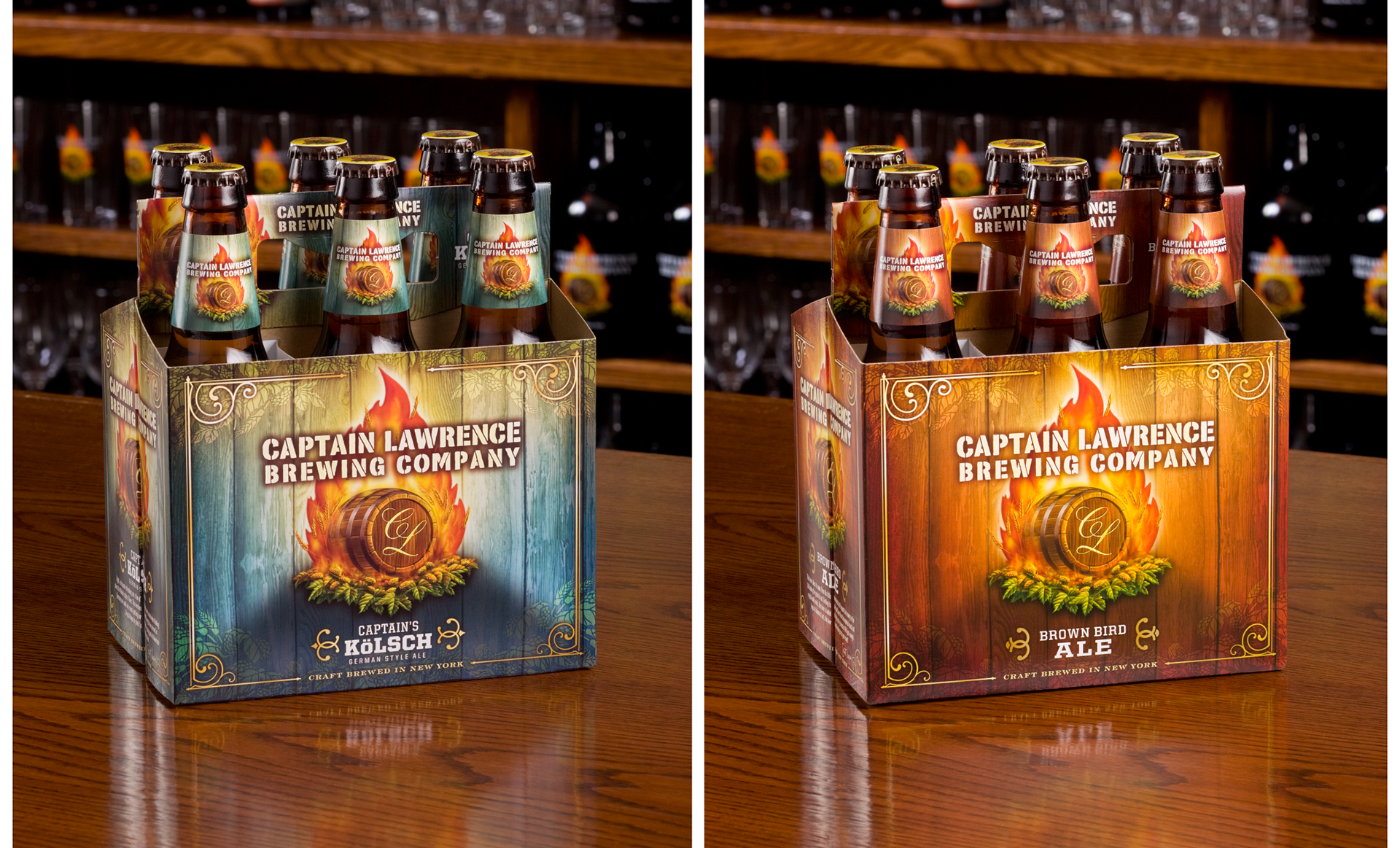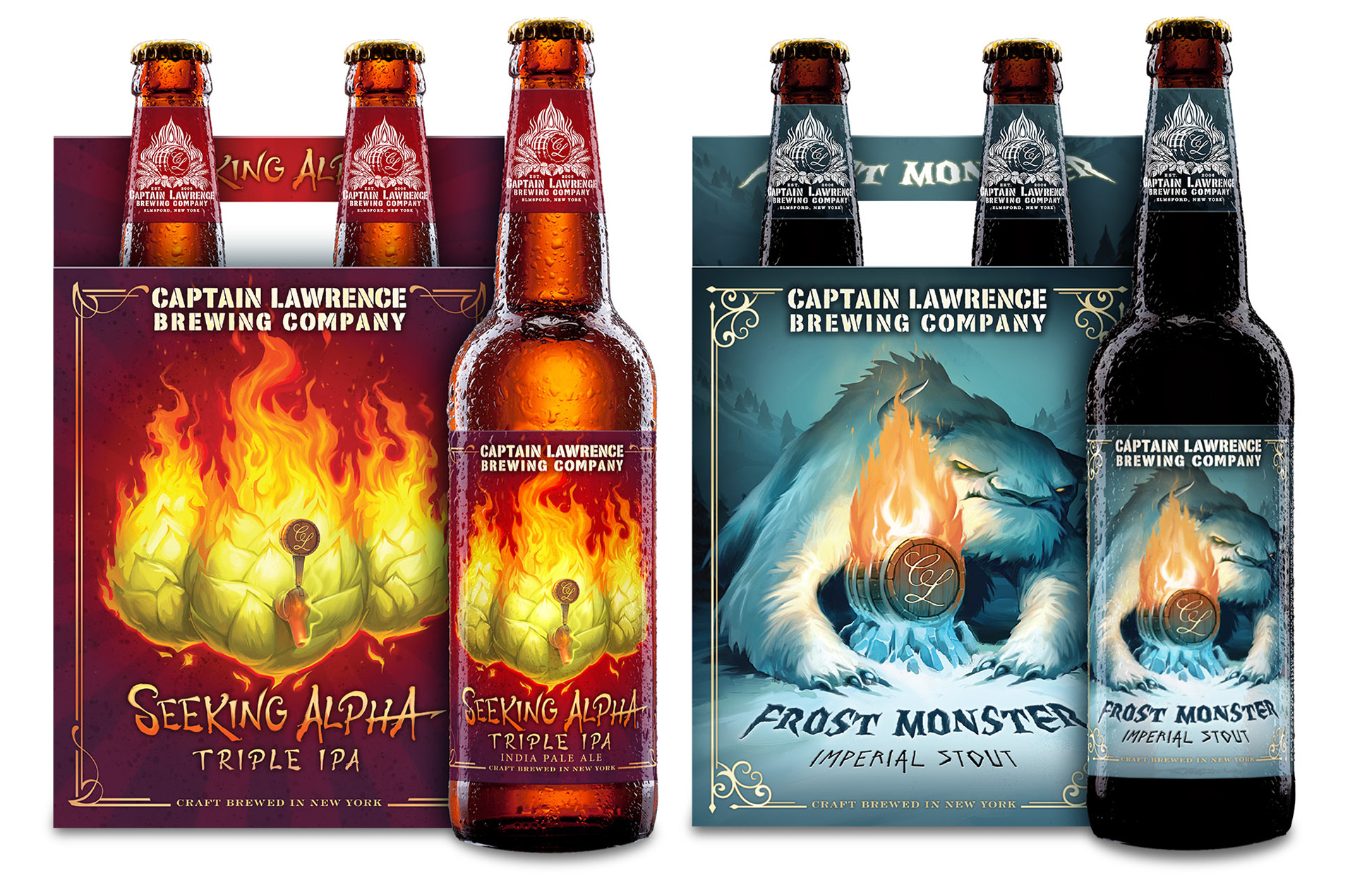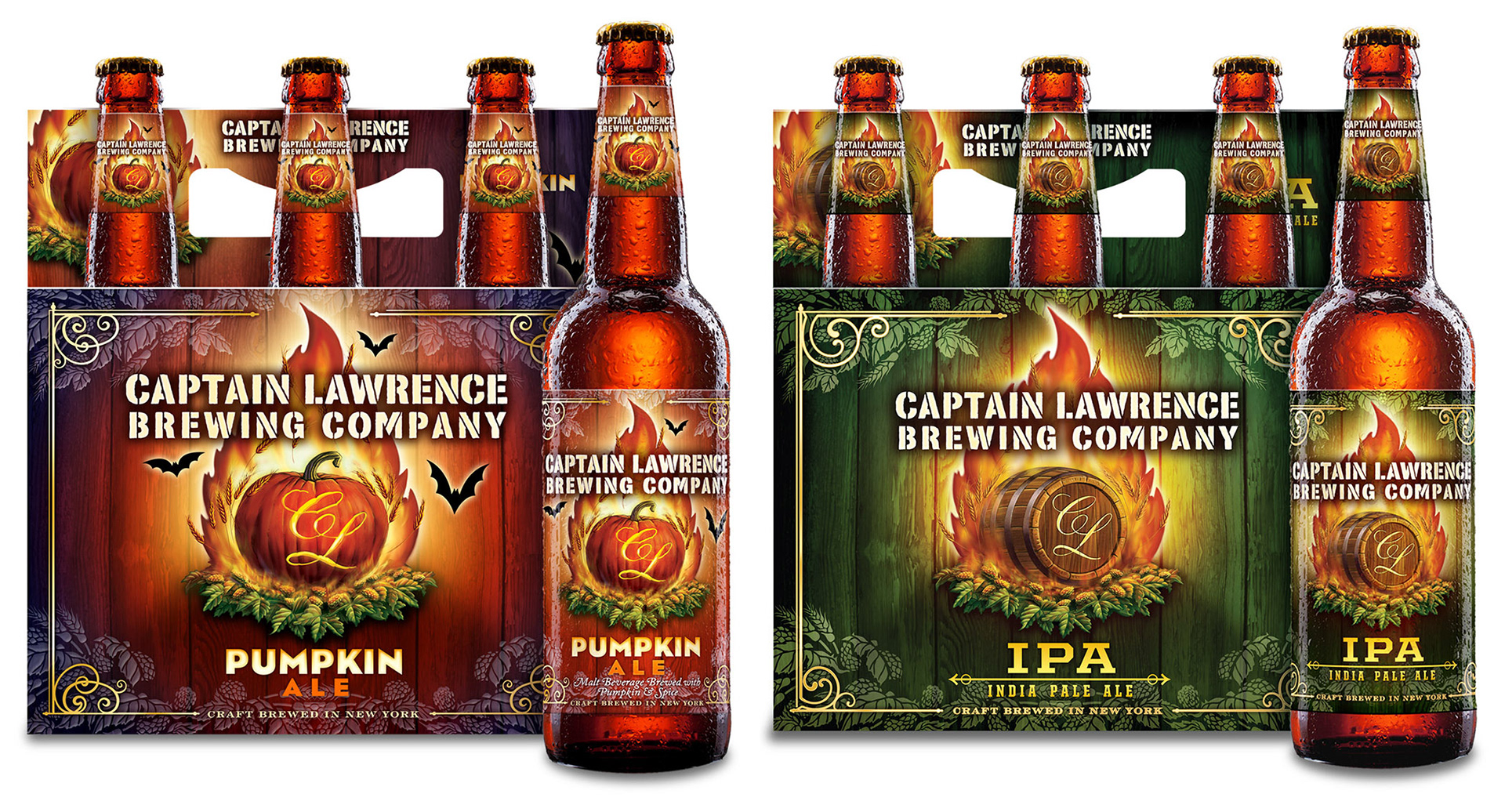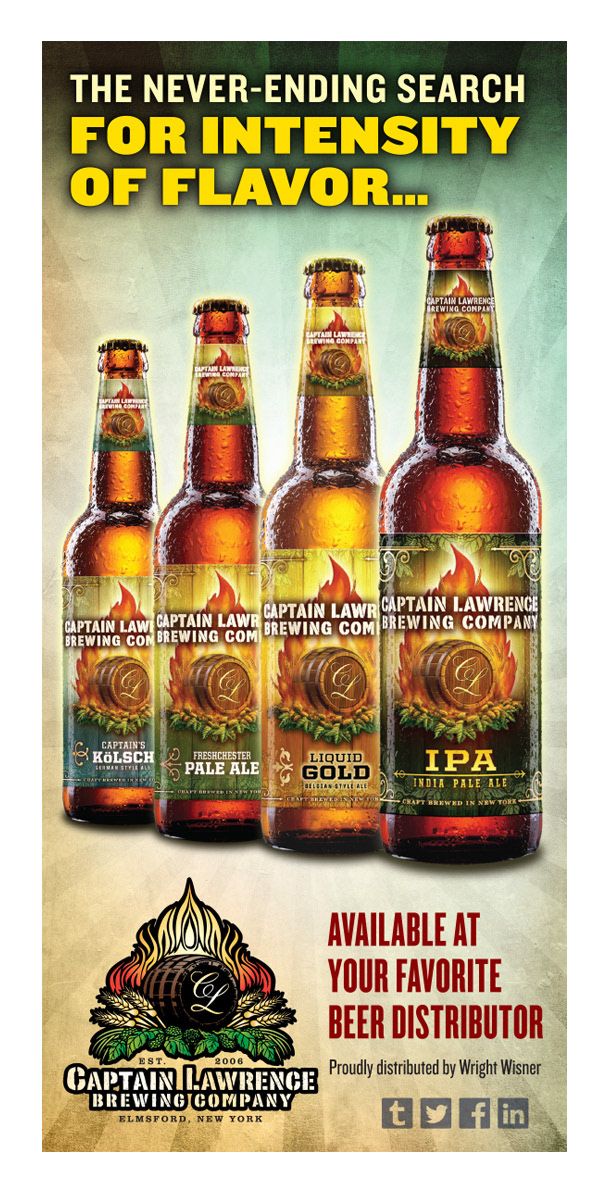 Since 2006 Captain Lawrence Brewing Company has been producing exciting craft ales mixing time honored traditions with progressive techniques such as barrel aging and experimental fermentation. Brash and fearless, yet gallant and dignified are words that describe both the product and the graphic identity of this award winning brewery.