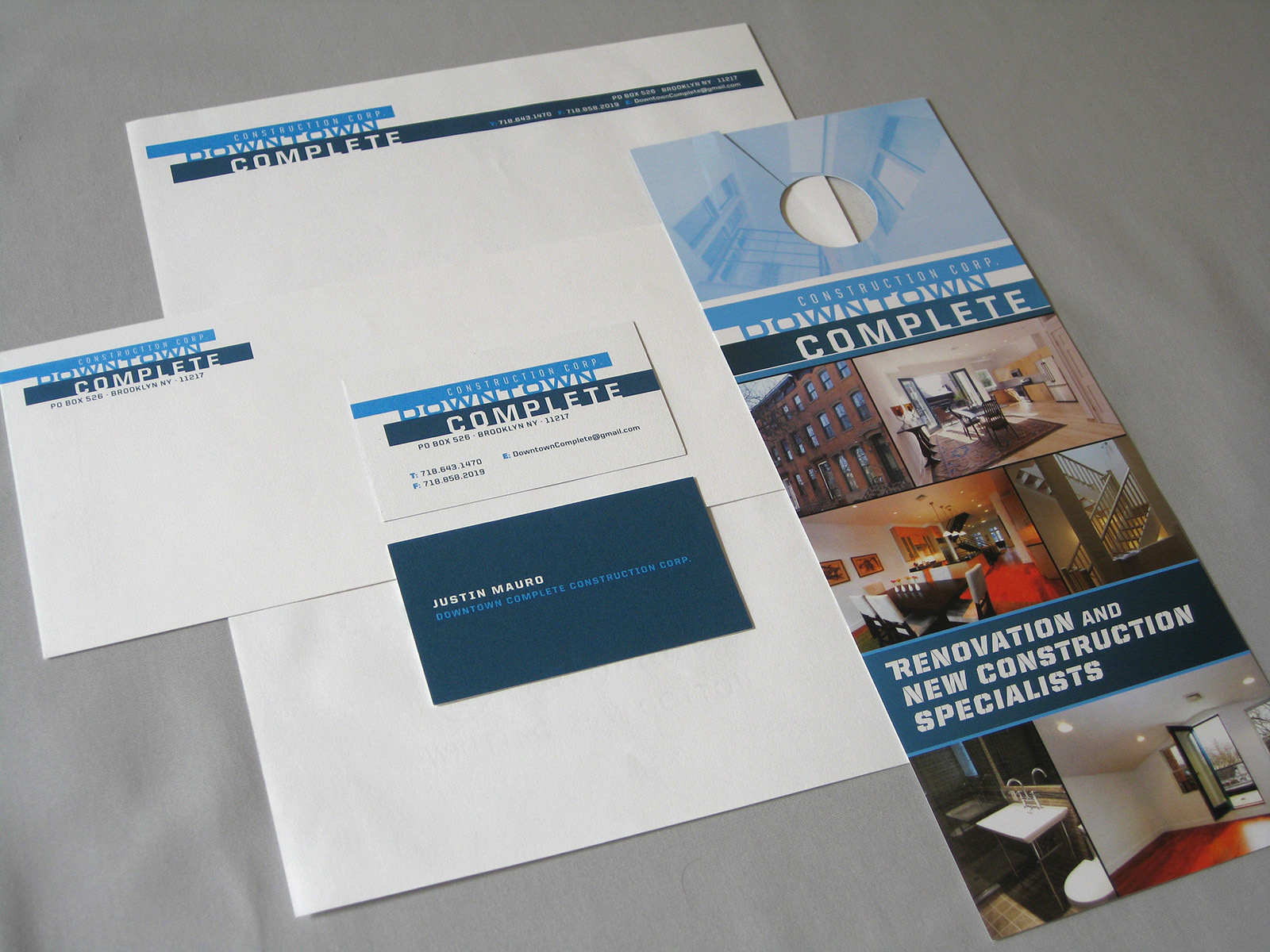 Logo, stationery and door-tag design for Brooklyn based construction group. Targeting architects and homeowners alike, this logo and graphic identity with it's industrial typeface and stencil cut lettering communicates strength, stability and precision, all important requisites for a general contractor.