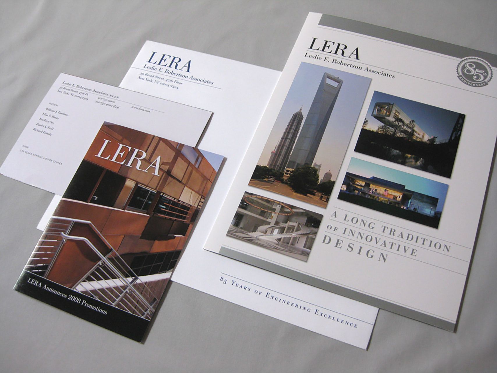 Since 1923 LERA has provided innovative and iconic structural engineering solutions for landmark projects worldwide. Using timeless typography, eye catching layouts and elemental color palettes these polished marketing materials uphold their integrity and expertise.