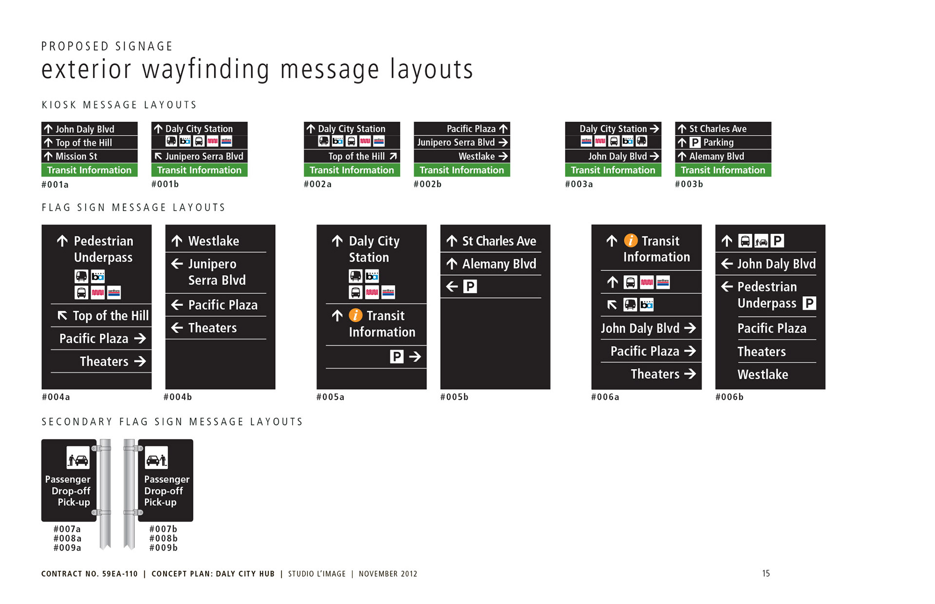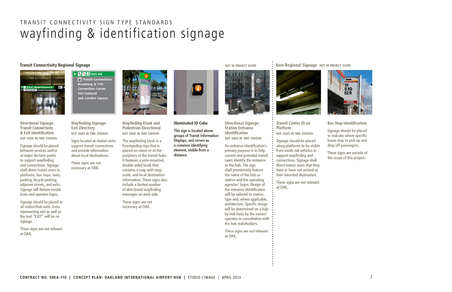 The Regional Hub Signage Program is designed to help simplify the process of passenger transfers at key transit stations (or “hubs”) throughout the nine county San Francisco Bay Area. Sponsored by the Metropolitan Transportation Commission (MTC) the objectives of the Hub Signage Program are to create a consistent look and feel for hub signage elements, improve the wayfinding experience, and add more transit information at these facilities. This program considers the needs of a broad range of users, including pedestrians, bicyclists, transit riders, and motorists.