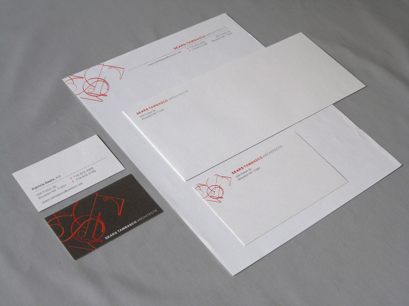 Logo and stationery design for Brooklyn based architecture firm. Calligraphic strokes of the logo accentuate the architecture of the letterforms. Text set in time-tested Helvetica emphasizes the steady, dedicated service this firm has provided to a diverse client base.